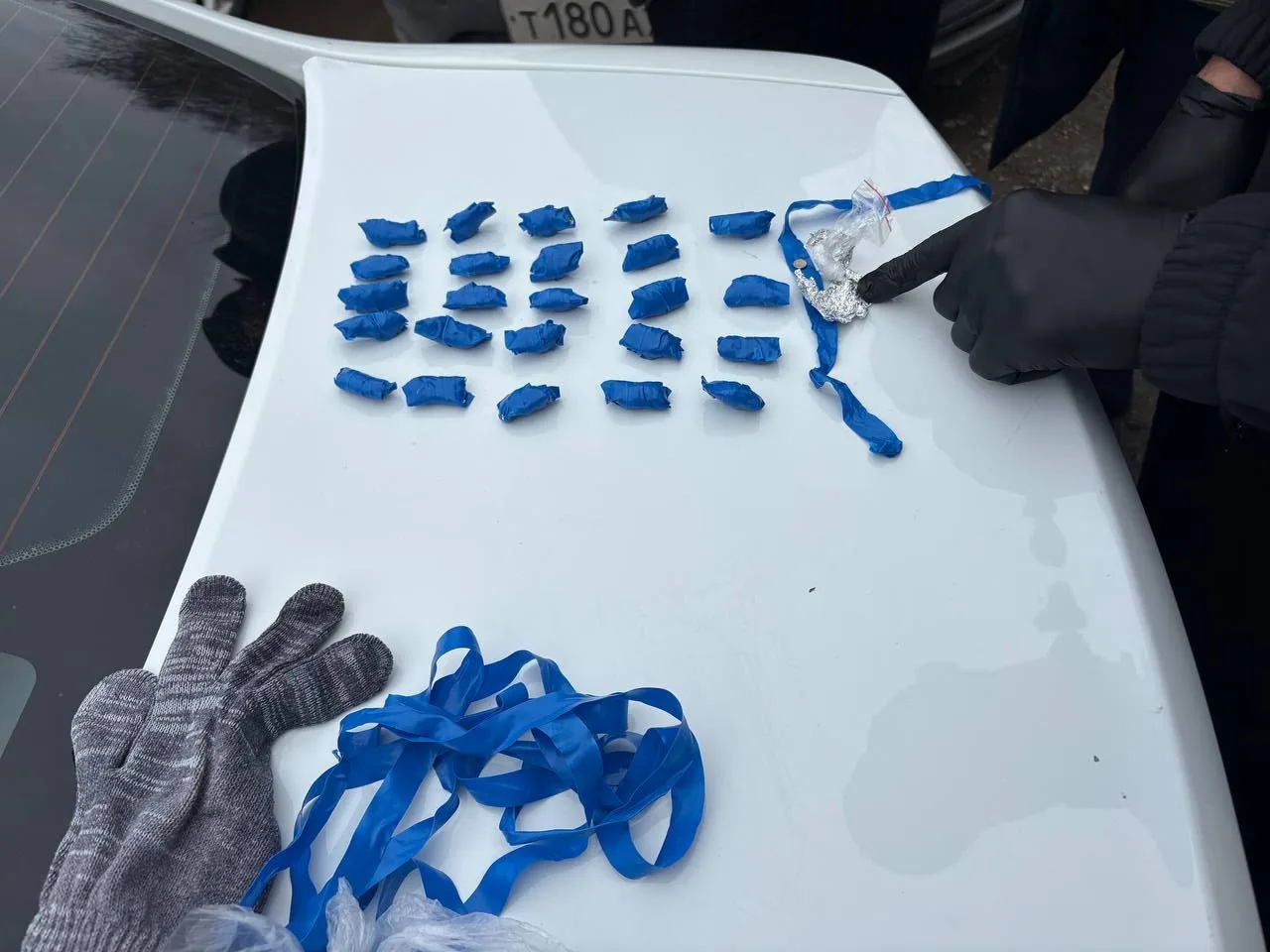 Во время досмотра автомобиля подозреваемой, в перчатке на водительской двери, был обнаружен пакет с 25 свертками внутри. Изъятое было направлено на экспертизу, которая установила внутри находится наркотическое средство мефедрон общим весом 29,83 грамма.