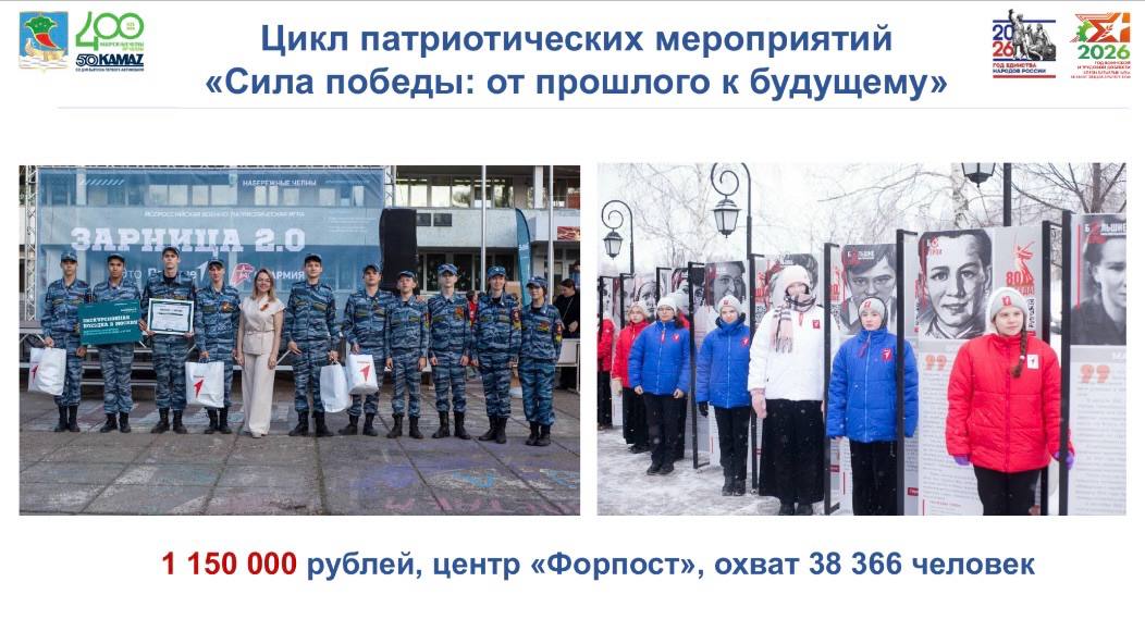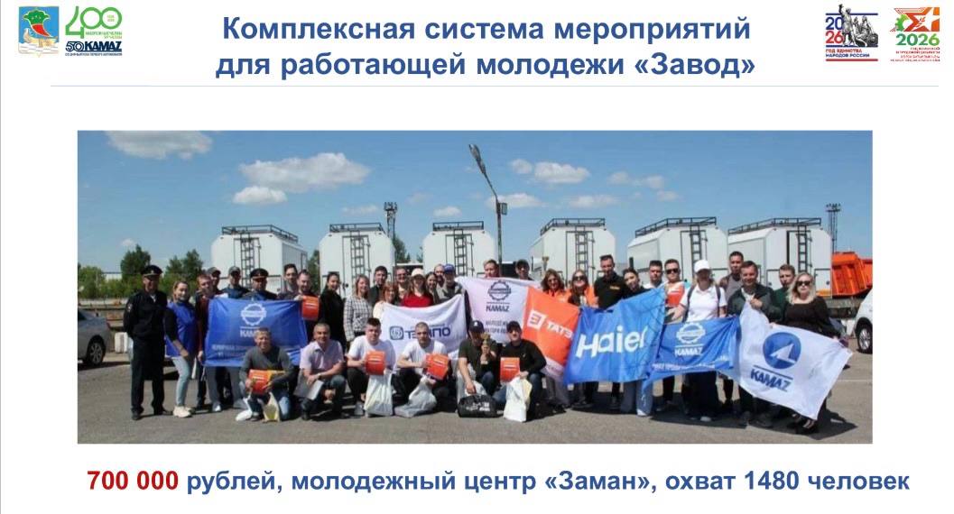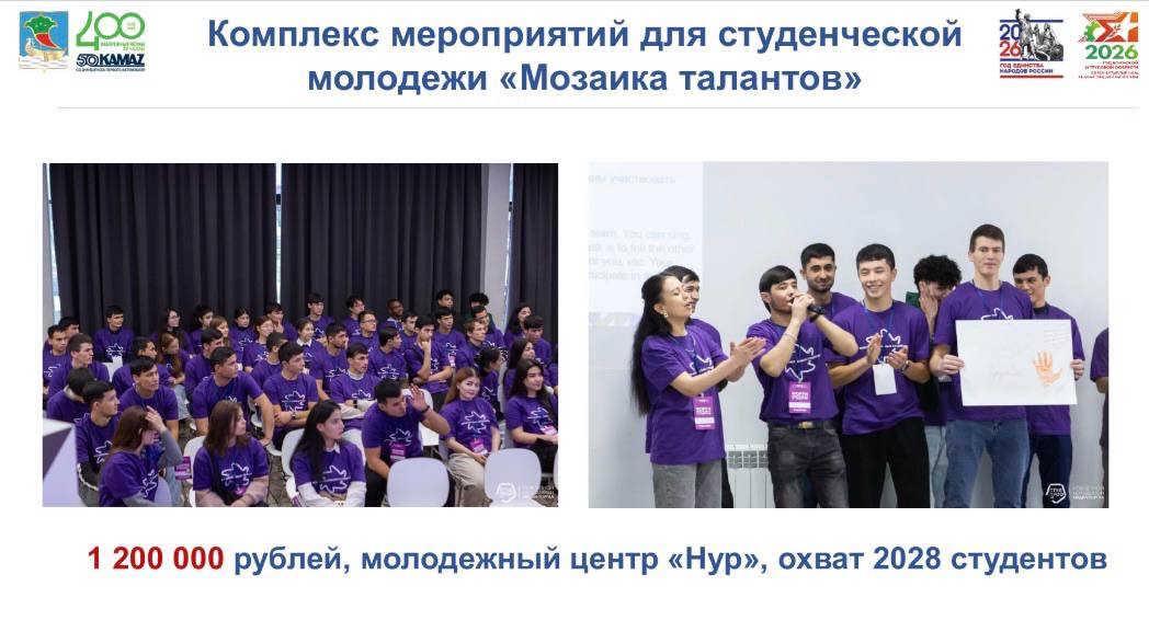 Начальник управления по делам молодежи Лейсан Видинеева доложила о реализации проектной деятельности. 27 проектов от нашей молодежи получили финансовую поддержку. Причем 4 гранта на сумму 4 050 000 рублей выиграли муниципальные учреждения в конкурсе Республики Татарстан.
