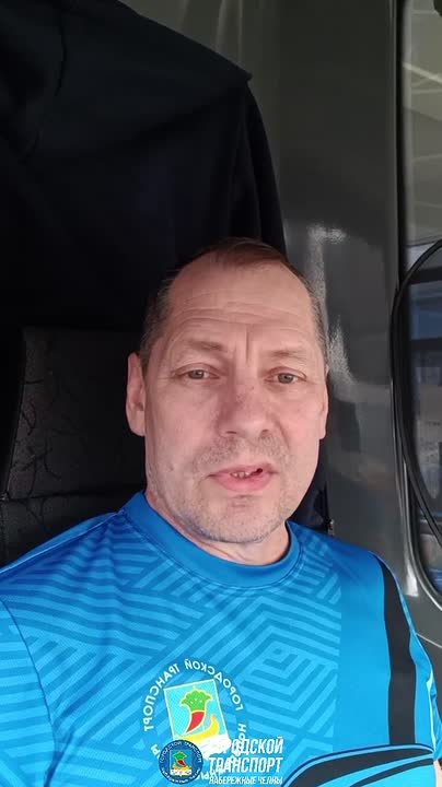 Водитель автобуса Вячеслав Скуфин передает привет пассажирам и желает хорошего настроения на весь день
