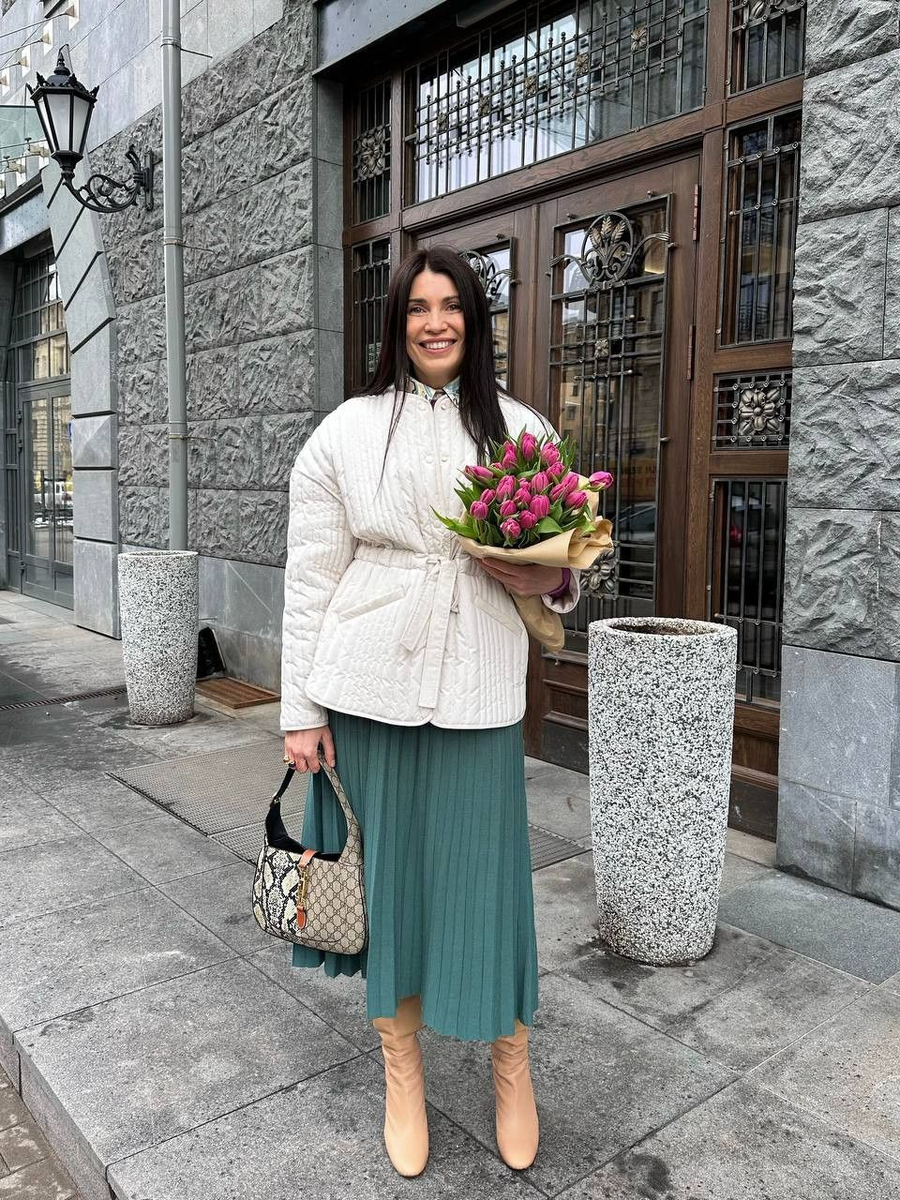 Легкость весны можно выразить через верхнюю одежду. Идеальный вариант — это светлый тренч или пальто, сделанное из бежевого, молочного или светло-серого материала и достигающее длины ниже колена. Отказ от ярких принтов и деталей позволяет создать чистый и утонченный силуэт.