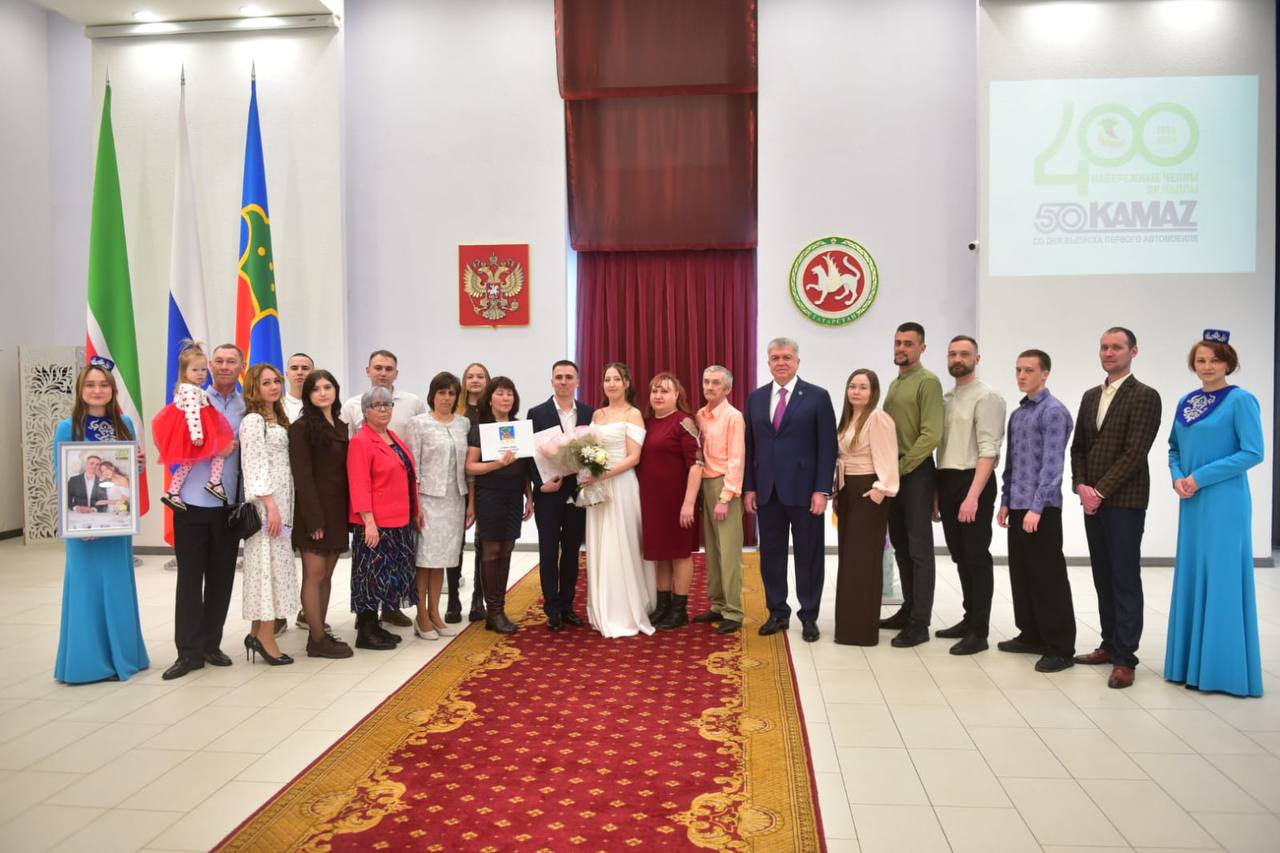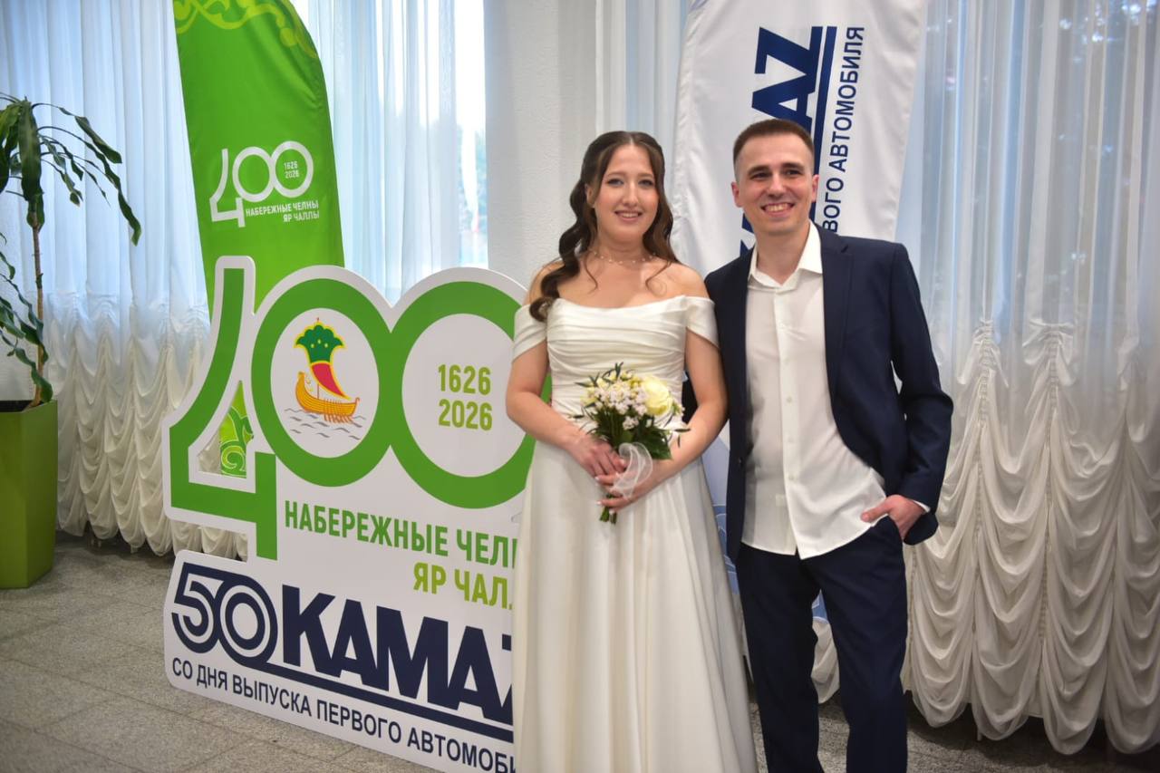 В год 400-летия основания города Набережные Челны и 50-летия со дня выпуска первого грузового автомобиля «КАМАЗ» во Дворце торжеств зарегистрирован брак 400й пары молодожёнов этого года. Жених-камазовец и его невеста отныне связаны и с историей Набережных Челнов, и с легендой отечественного автопрома.