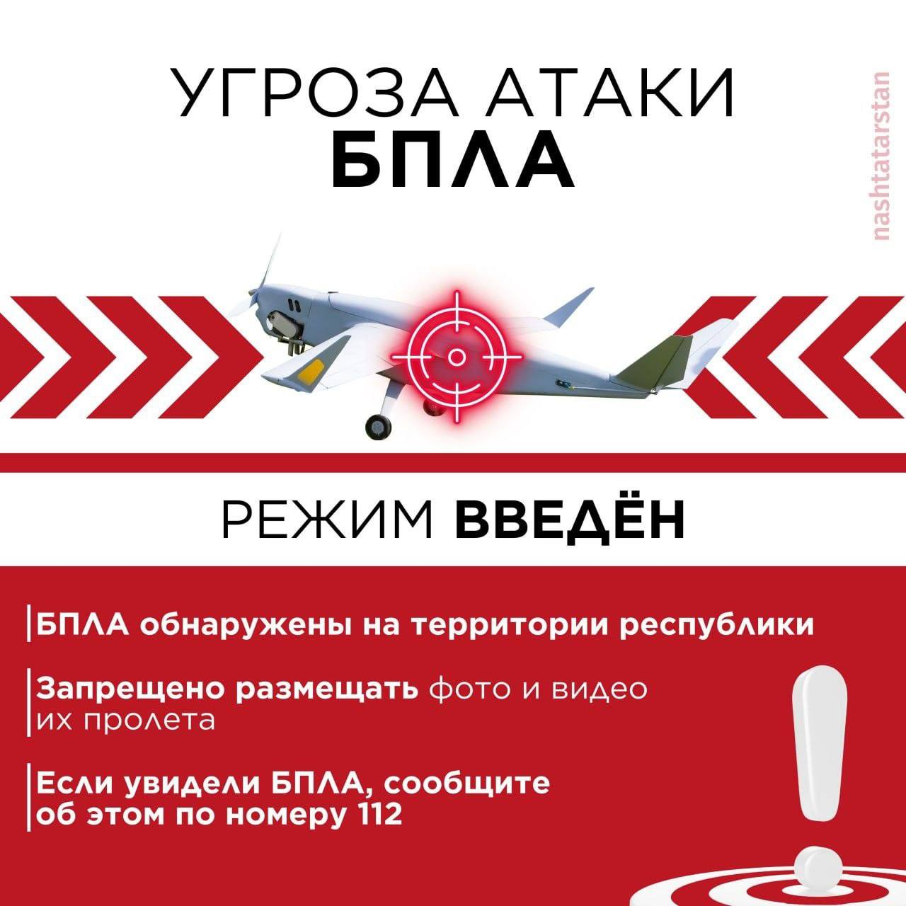 Объявлена угроза атаки БПЛА для городов Альметьевск, Набережные Челны, Елабуга и Нижнекамск