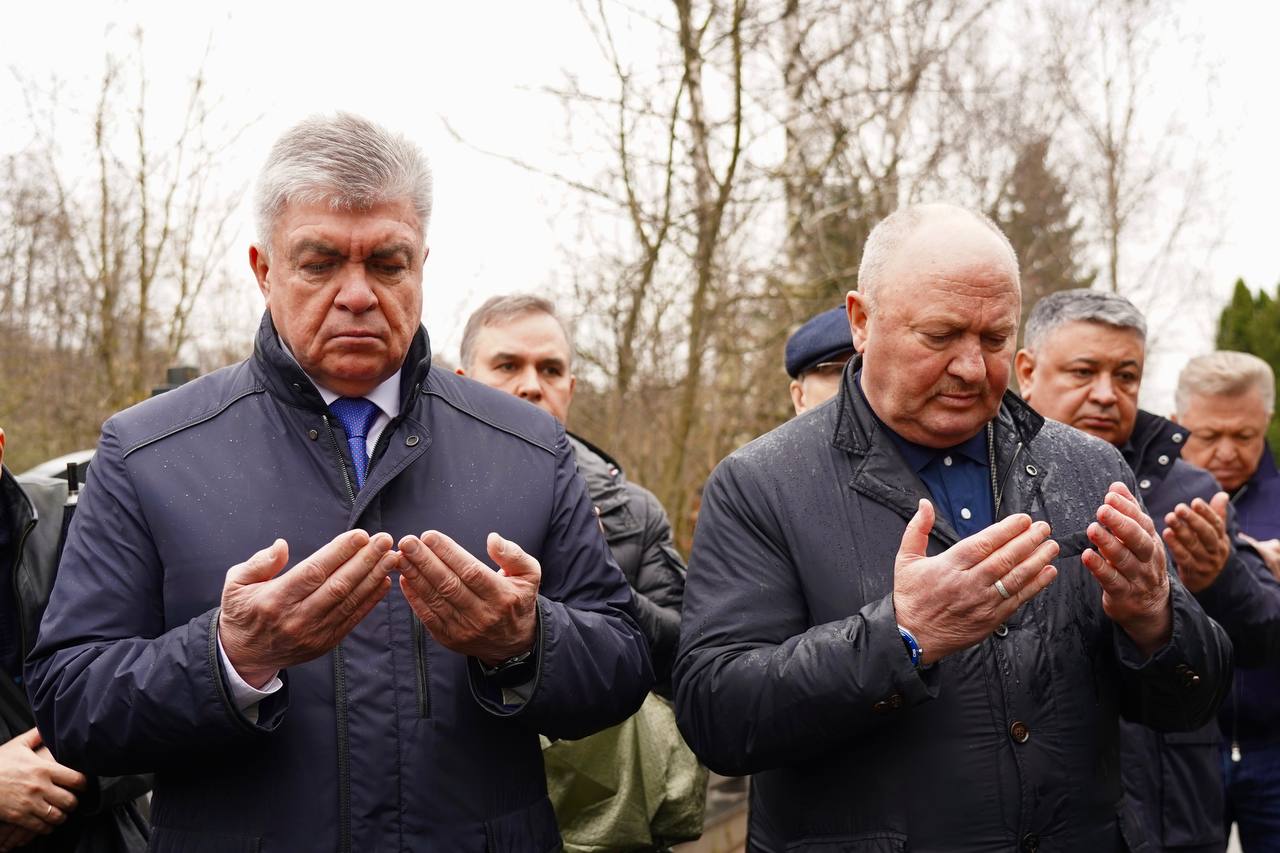 По мусульманской традиции заместитель Председателя Духовного управления мусульман России Рушан хазрат Аббясов прочитал молитву (дуа) в память об усопшем.