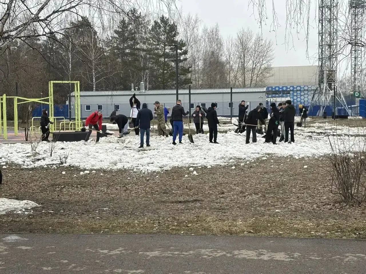 в парке «Гренада» – студенты инженерно-экономического колледжа при КФУ рыхлили снег, собирали листву и мусор; благодаря их слаженной работе дорожки и площадки в парке теперь чистые и готовы к прогулкам;