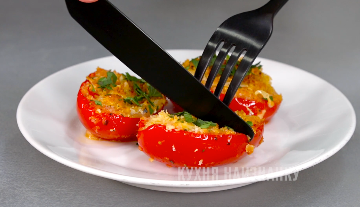 Затем помидоры нужно поставить в заранее разогретую до 200 градусов духовку на 10-12 минут. После готовности их можно посыпать нарезанной зеленью. Это блюдо отлично сочетается с мясными блюдами и гарниром; его можно наслаждаться как в горячем, так и в холодном виде. Непременно стоит попробовать эту простую, но невероятно вкусную закуску!