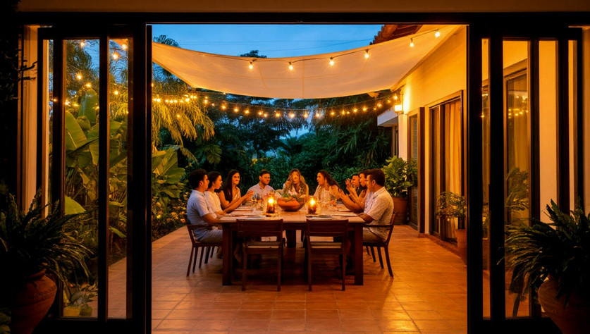В странах с жарким климатом внутренний дворик, или патио, является продолжением гостиной, где основная цель — защититься от палящего солнца. Здесь активно контролируют поступление солнечного света.