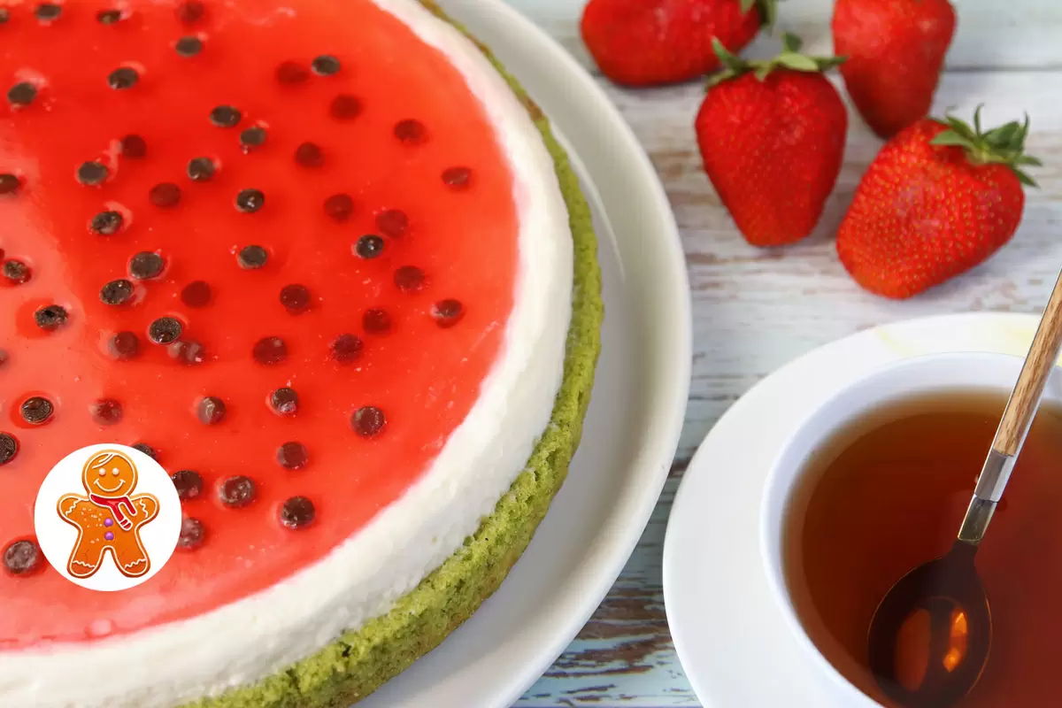 Новый рецепт тортa «Арбуз» сочетает необычный зеленый бисквит на основе шпината, легкий йогуртово?сливочный крем и красное желе, имитирующее сочную мякоть. Блюдо простое в исполнении, эффектно выглядит и подходит для летних праздников.
