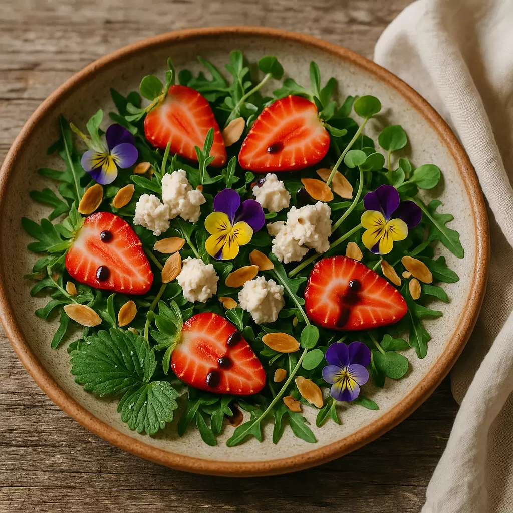 Клубничный салат с веганским сыром