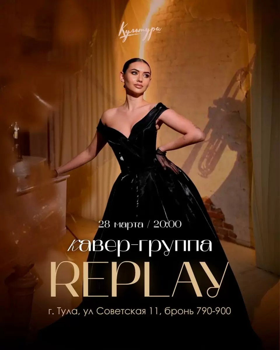 28 марта в ресторане «Культура» ожидается уникальное событие для ценителей хорошей музыки и приятной атмосферы. Начиная с 20:00, выступит группа «REPLAY», которая не оставит равнодушным никого из гостей.