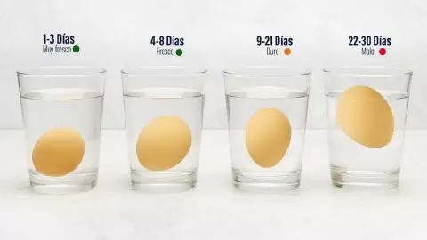 - Лежит на дне горизонтально: Яйцо абсолютно свежее (1-4 дня). Белок плотный, а желток упругий, что делает его идеальным для приготовления яиц пашот или глазуньи.