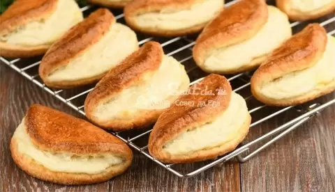 Для начинки творог протирается, после чего смешивается с сахаром, сметаной и мукой до достижения однородной консистенции. Далее тесто раскатывается в тонкие круги, на одну половину которых кладется начинка, а затем они аккуратно складываются пополам. Выпекаются сочники в разогретой до 180 градусов духовке до золотистой корочки.