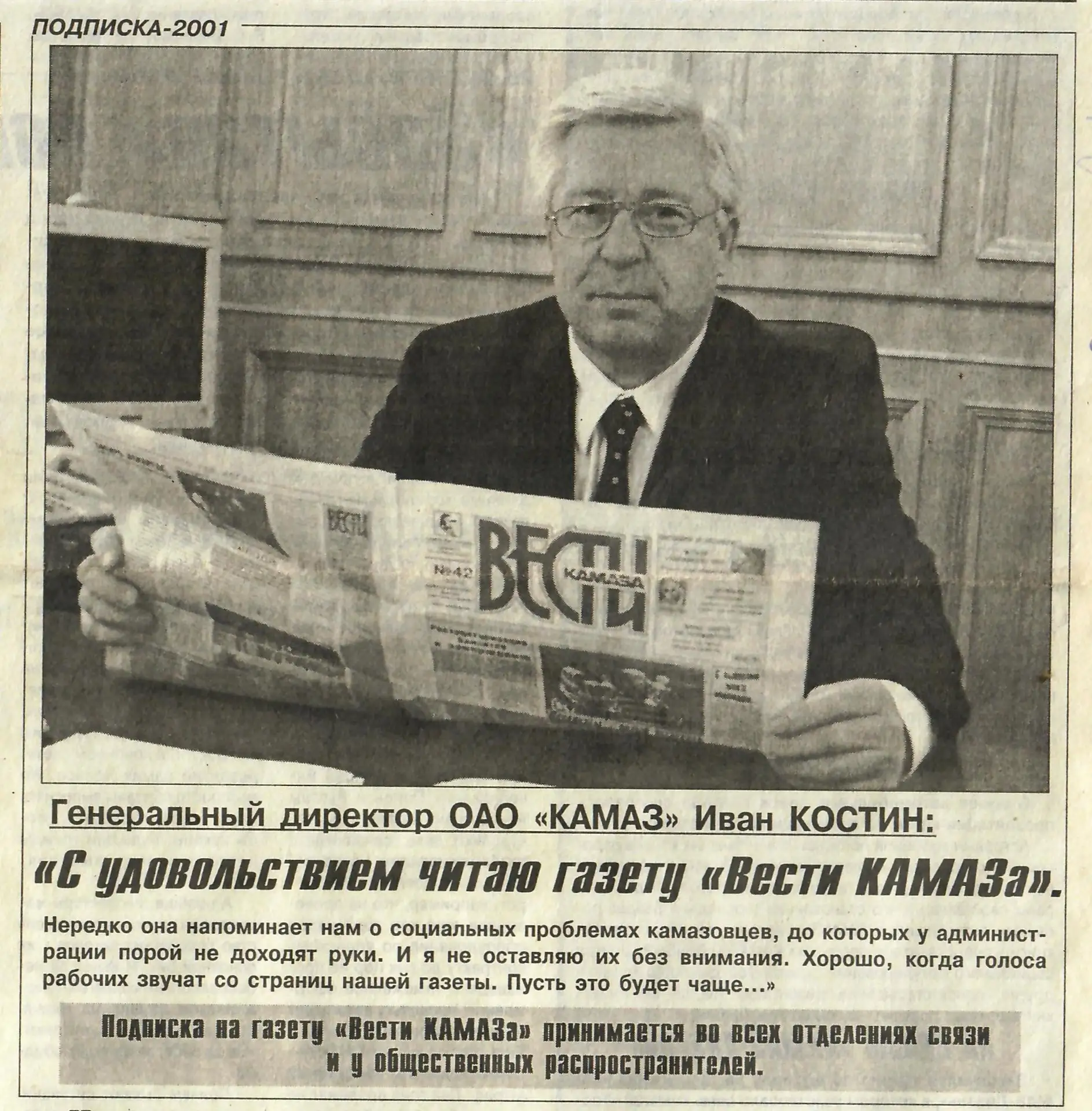 Главный вызов ждал его впереди. В январе 1997 года, когда предприятие фактически находилось в непростом положении, Иван Михайлович Костин был назначен генеральным директором ОАО «КАМАЗ».