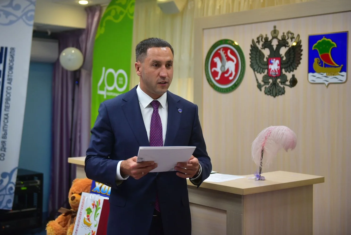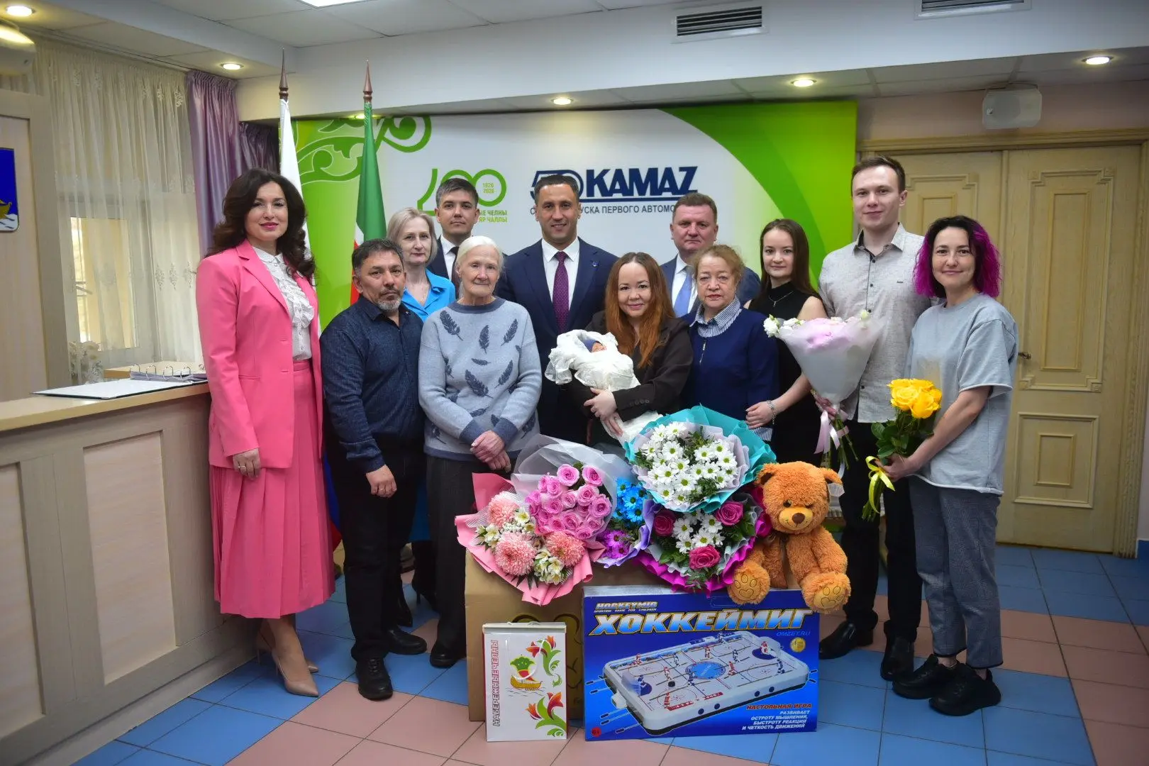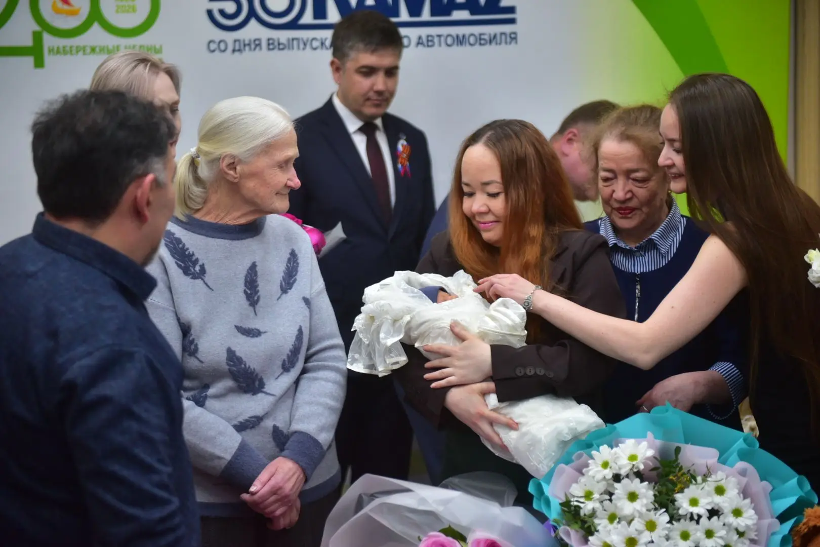 По доброй городской традиции молодую маму поздравил Фарид Салахов: