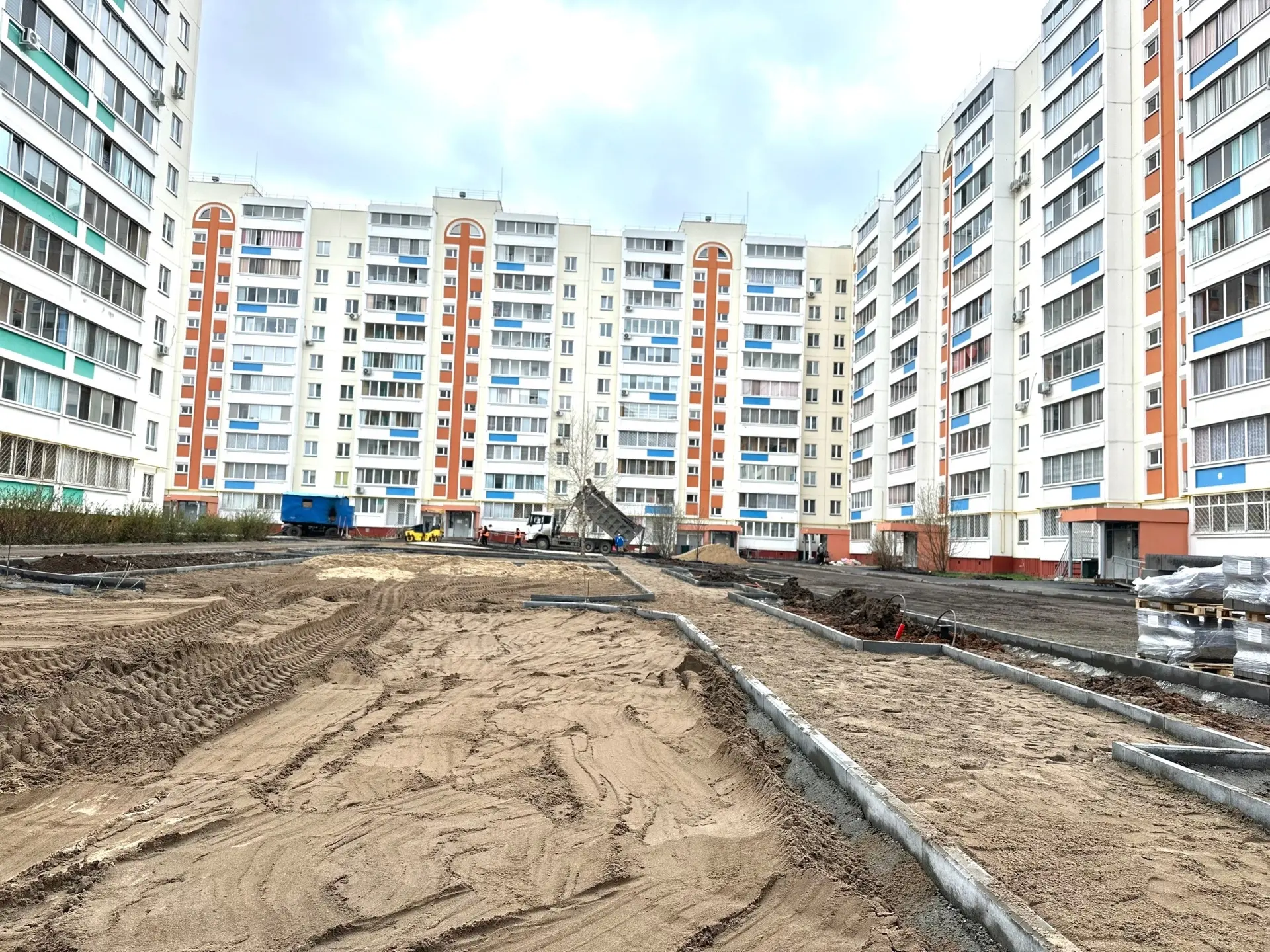 В 21 комплексе активно ведутся работы по благоустройству в рамках программы «Наш двор». Сейчас дорожники укладывают асфальтовое покрытие на тротуаре у дома 21/21. Здесь также завершено обрамление будущей спортивной и детской площадки, в ближайшее время начнётся заливка бетона. На площадке разместятся баскетбольная зона и две песочницы.