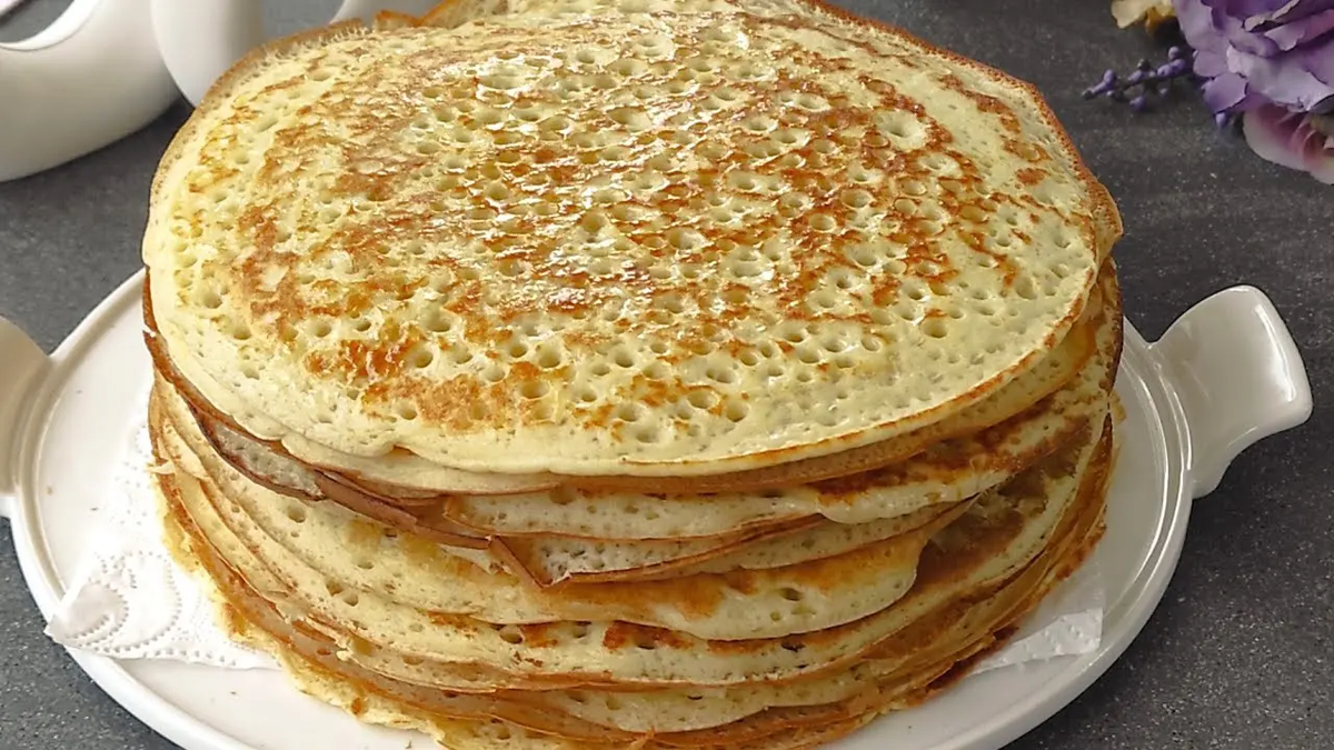 - Блины на кефире: Потребуются 500 мл теплого кефира, 2 яйца, щепотка соли, 2 чайные ложки сахара и 200 граммов муки. Добавьте 3 столовые ложки растительного масла и разогретую воду с содой для легкости.