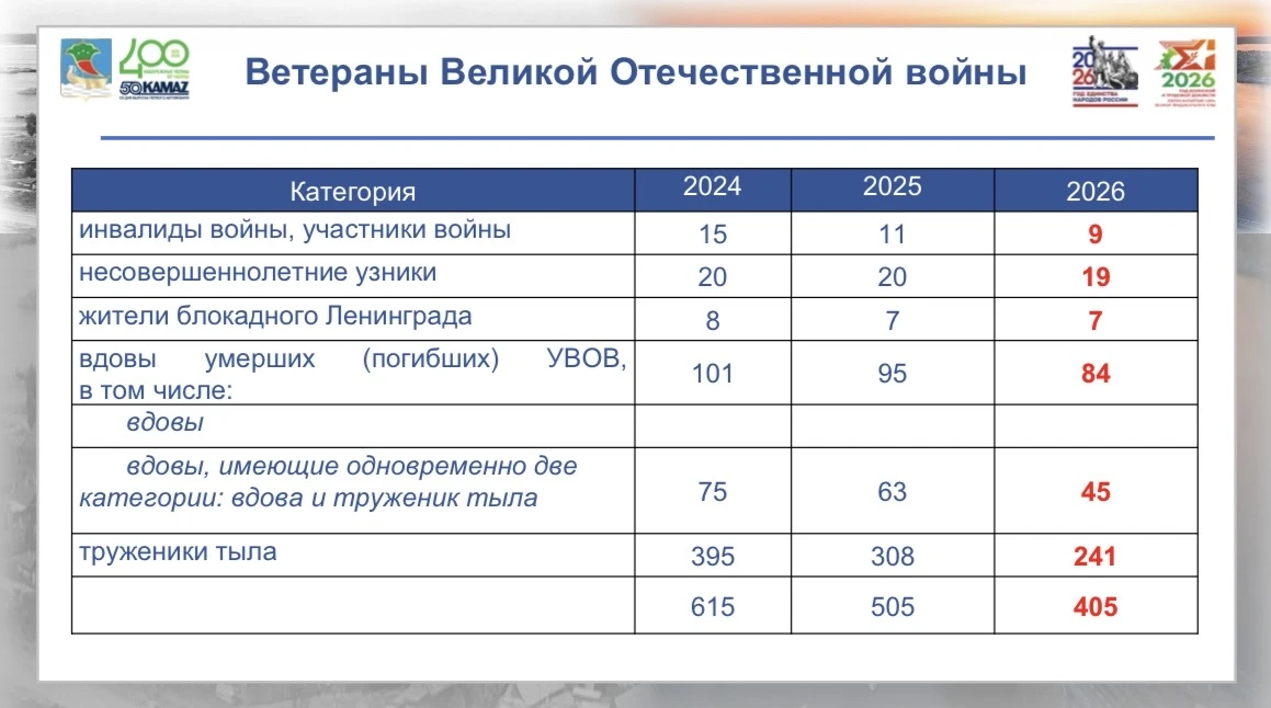 Сейчас в городе проживают 405 ветеранов Великой Отечественной войны и приравненных к ним лиц. Самому молодому из них — 98 лет, а двум челнинцам уже исполнилось 100 лет.