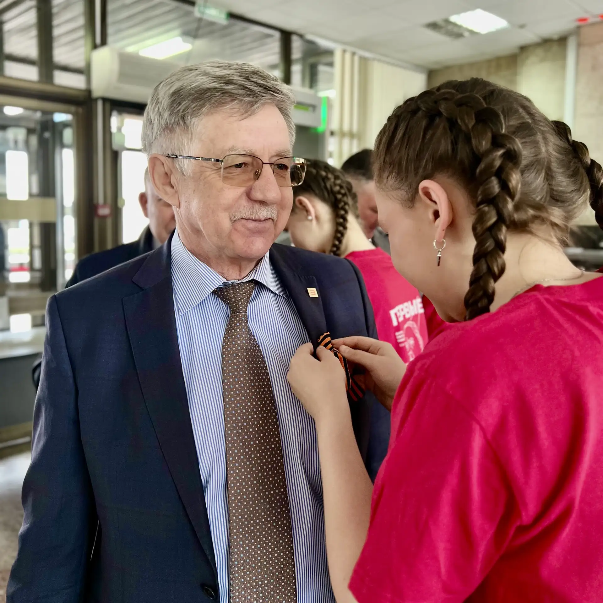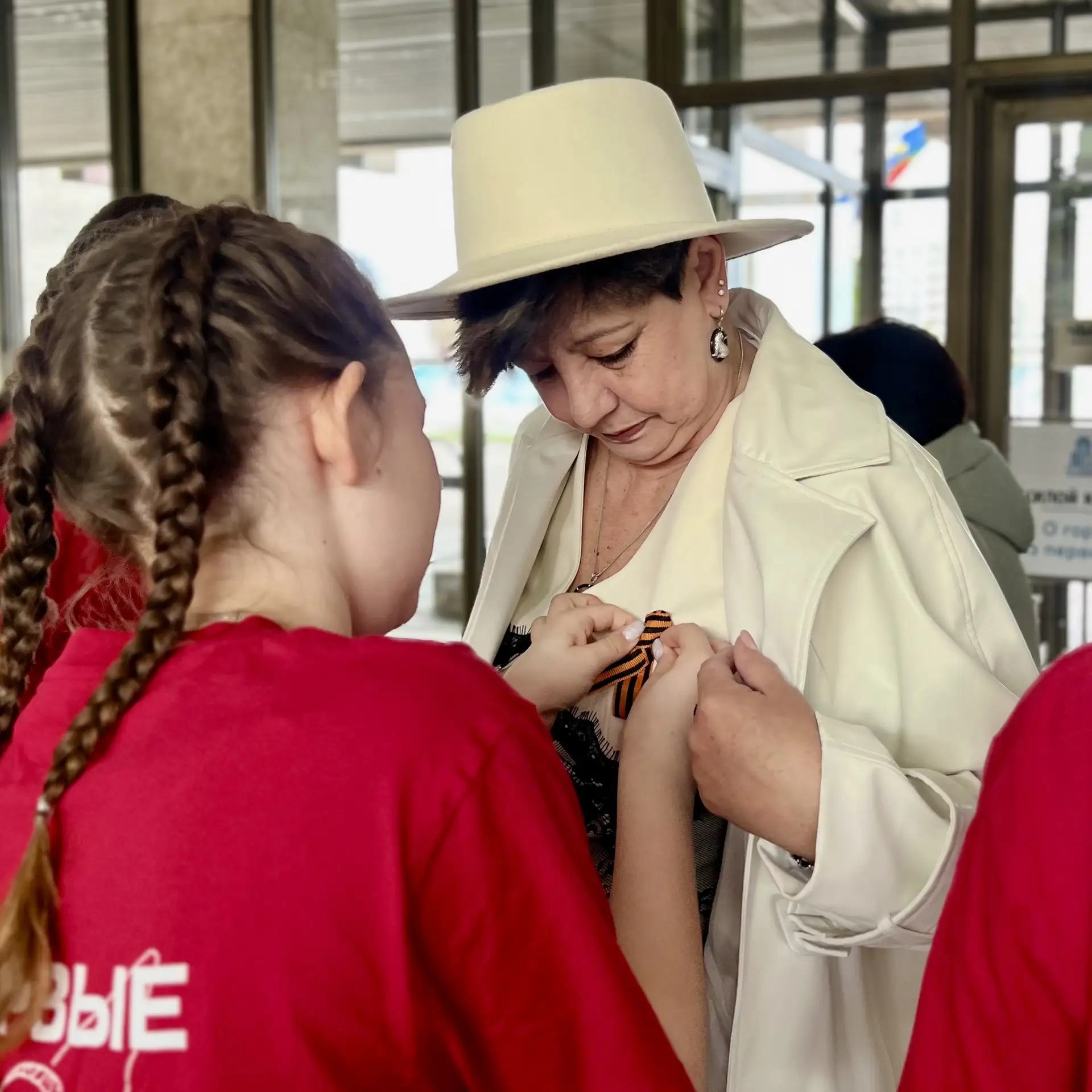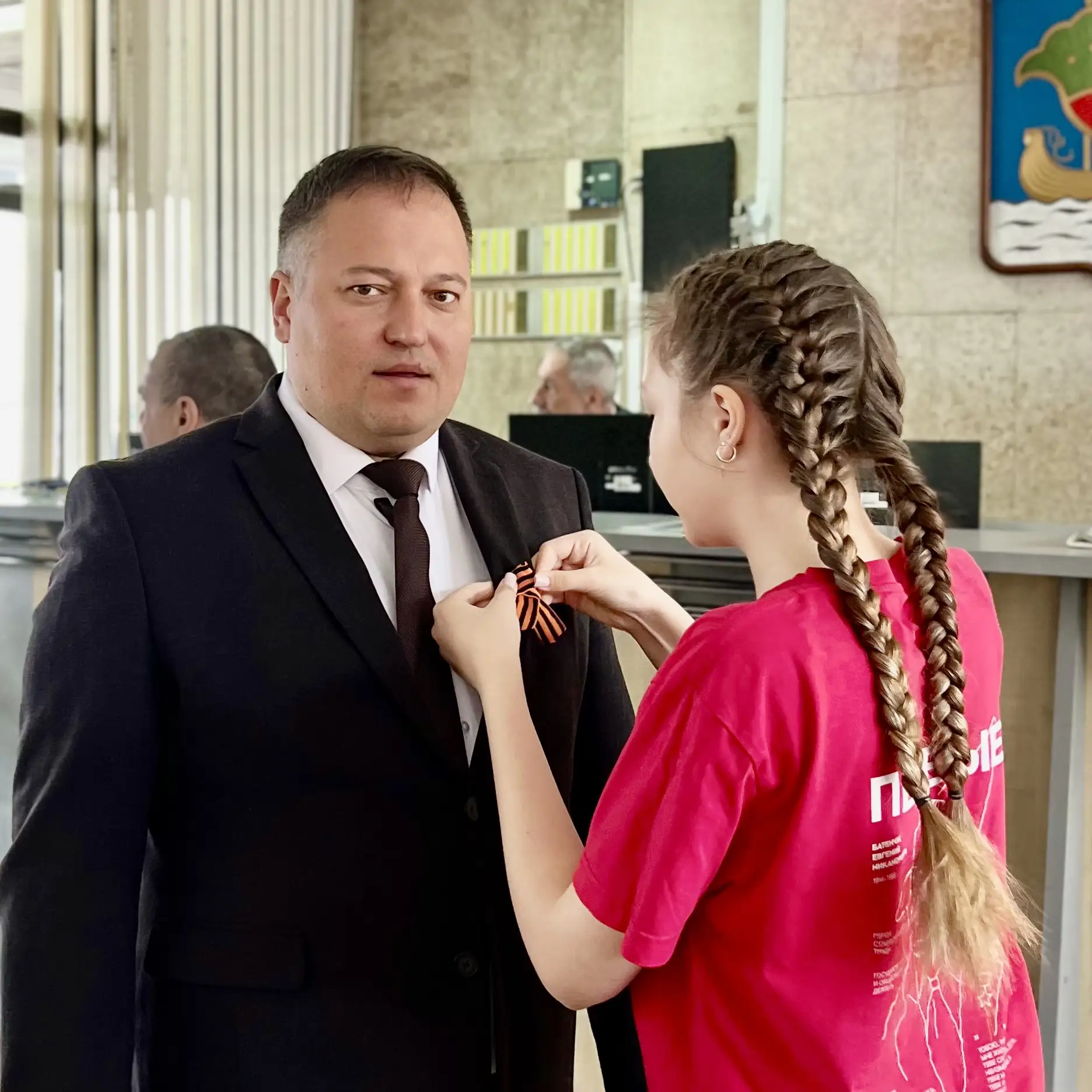 Участники Движения Первых прикрепили Георгиевские ленты на одежду идущим на свои рабочие места сотрудникам, пожелали хорошего дня и зарядили отличным настроением.