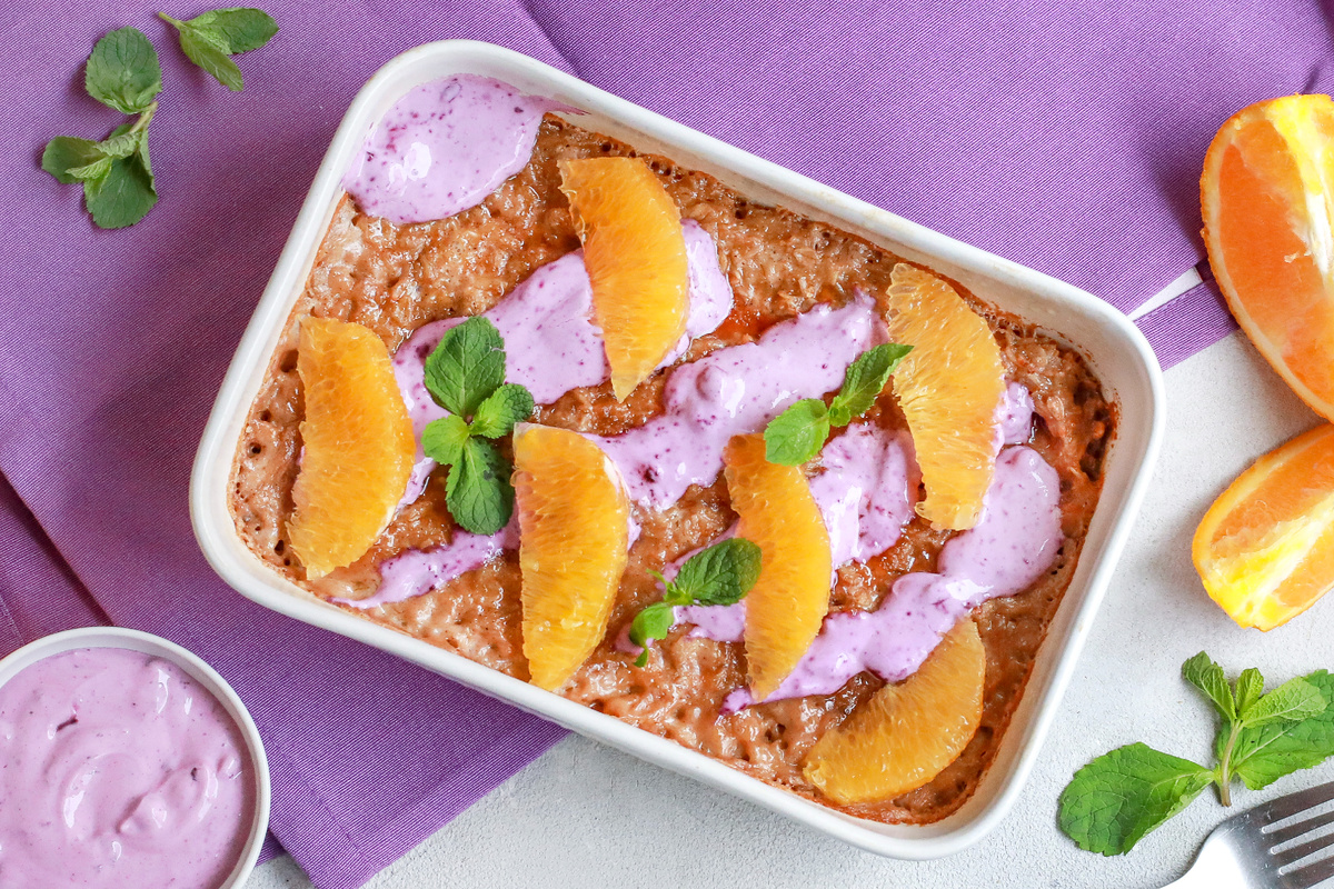 Запеченная овсянка с черникой и апельсином порадует своей легкостью и изысканным вкусом. Подавайте это восхитительное блюдо немедленно, наслаждаясь каждым укусом!